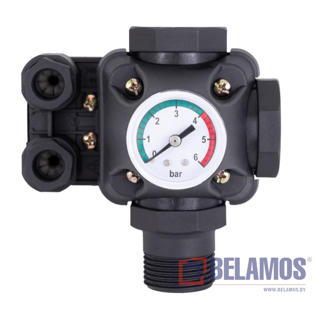 PR-10 представляет собой реле давление с манометром собранных на базе 3-х ходового фитинга, может монтироваться в систему без дополнительных монтажных операций.